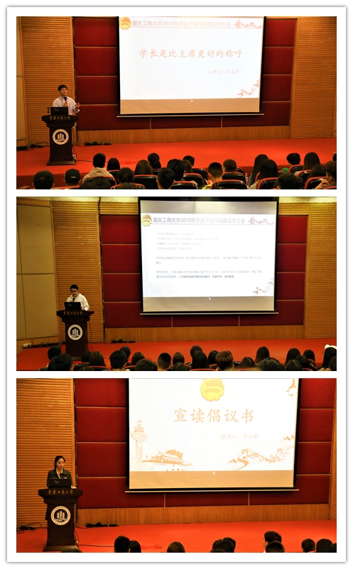 10月14日,学生干部作风建设学习会在南岸校区博智楼7200召开,校团委副书记杨娟、陆嘉出席会议,校、院学生会,研究生会共计150名学生干部参加会议。会议由陆嘉副书记主持。