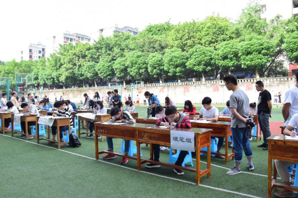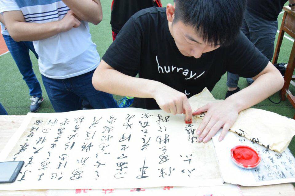 2017年5月12日下午,8xbet体育登录的绿茵场显得格外清爽,今天的绿茵场并非一个体育竞技场,而是一个挥毫泼墨的书法比赛现场。