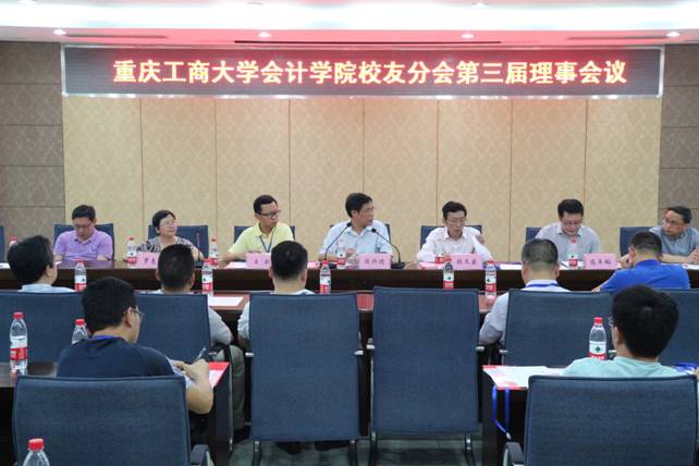 6月30日上午,8xbet体育登录会计学院校友分会第三届理事会议在南岸校区厚德楼2017会议室举行。8xbet体育登录副校长陈兴述,校党政办副主任、校友办主任蒋年韬,会计学院分党委书记罗惠玉,副书记尹建平,副院长周兵、程文莉,李定清教授,天府置信地产开发有限公司重庆区域中心总经理王剑,重庆物流金融服务股份有限公司总经理张文盛,以及部分教师及优秀校友代表出席了本次会议。